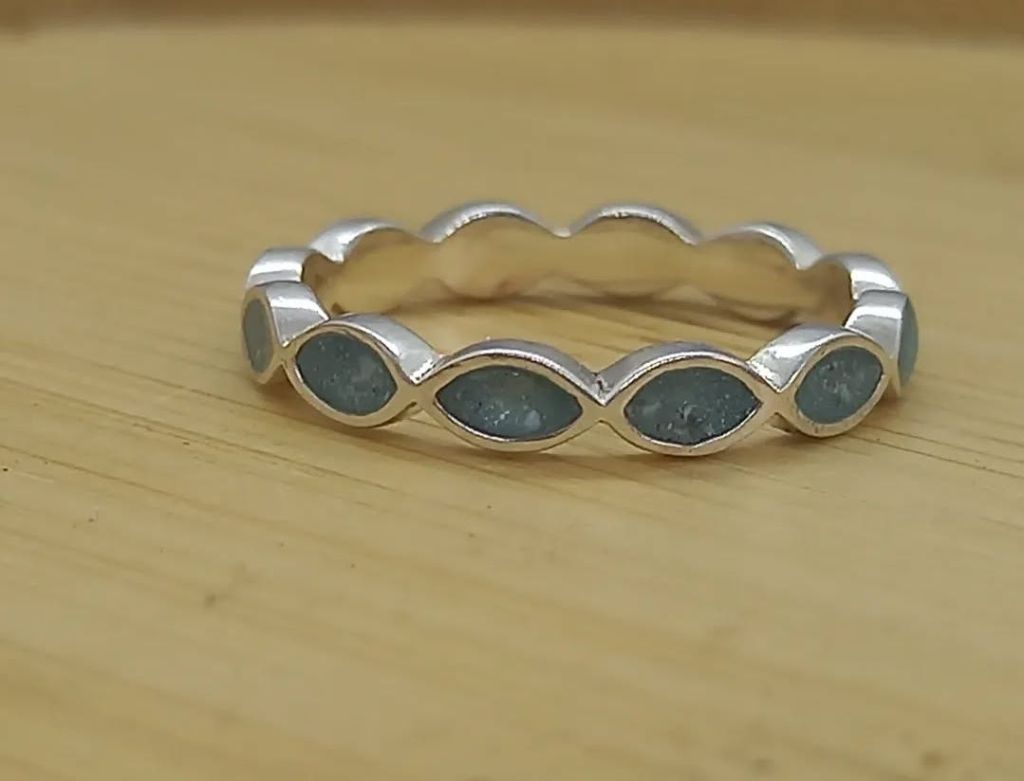 Sterling silver resin jewellery. This can include ashes, hair, fur, flowers or breastmilk.
